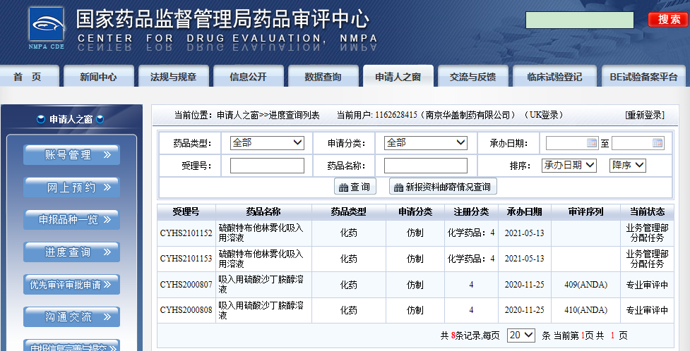 南京華蓋制藥硫酸特布他林霧化吸入用溶液獲CDE受理
