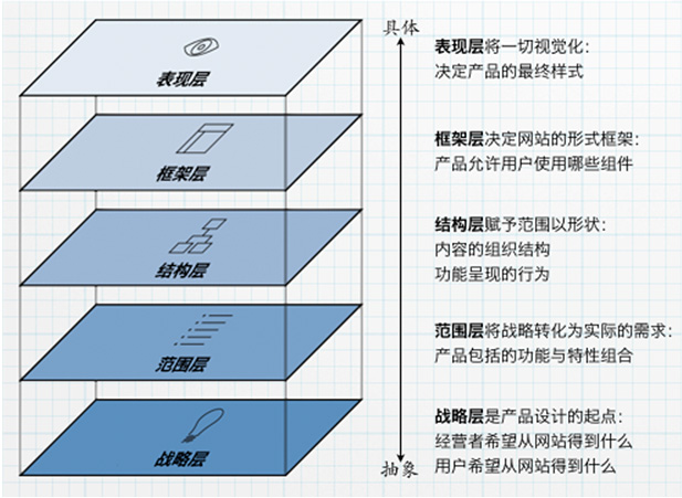 根據(jù)Jesse Garrett的產(chǎn)品設(shè)計(jì)層次模型,重新梳理產(chǎn)品定位,探索在新的視覺形式框架下形成清晰的可供性感知。